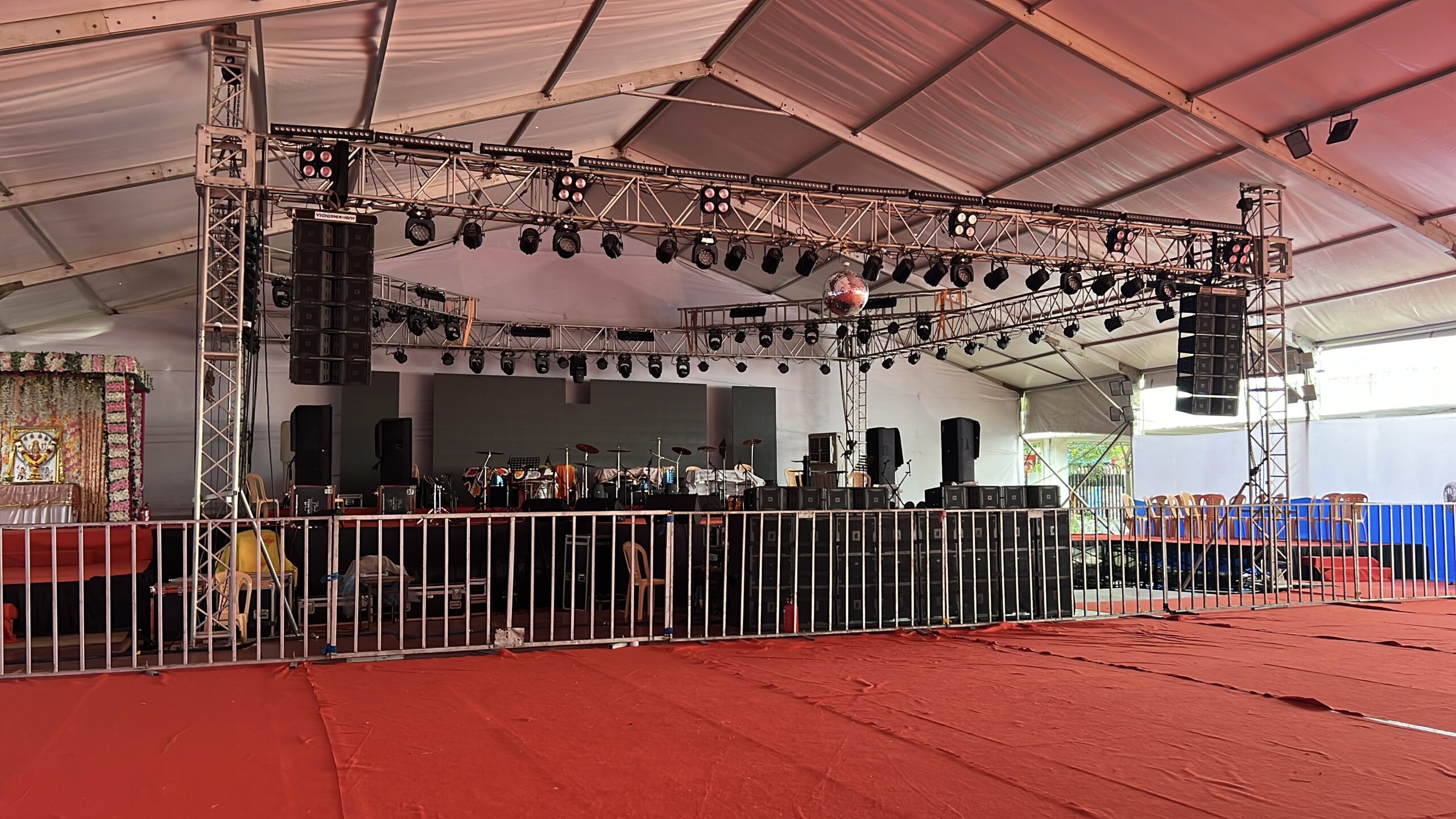 Siraj Decorators offers end-to-end flooring rental services—including site inspection, design consultation, customized layout planning, on-site installation, and post-event dismantling. Alongside flooring, we also supply complementary infrastructure like stage platforms, trussing, barricades, seating, and lighting—giving you a one-stop solution for flawless event execution.